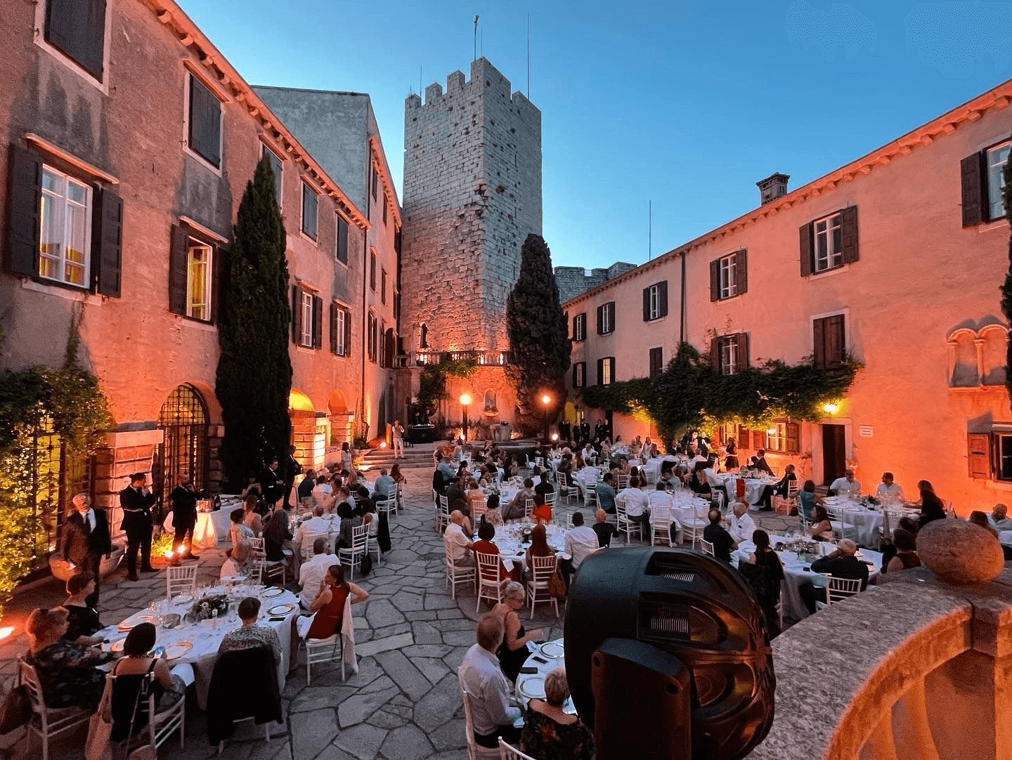 It is hosting dinner in a stone courtyard overlooking the Adriatic.
